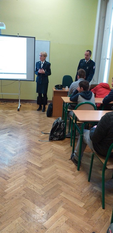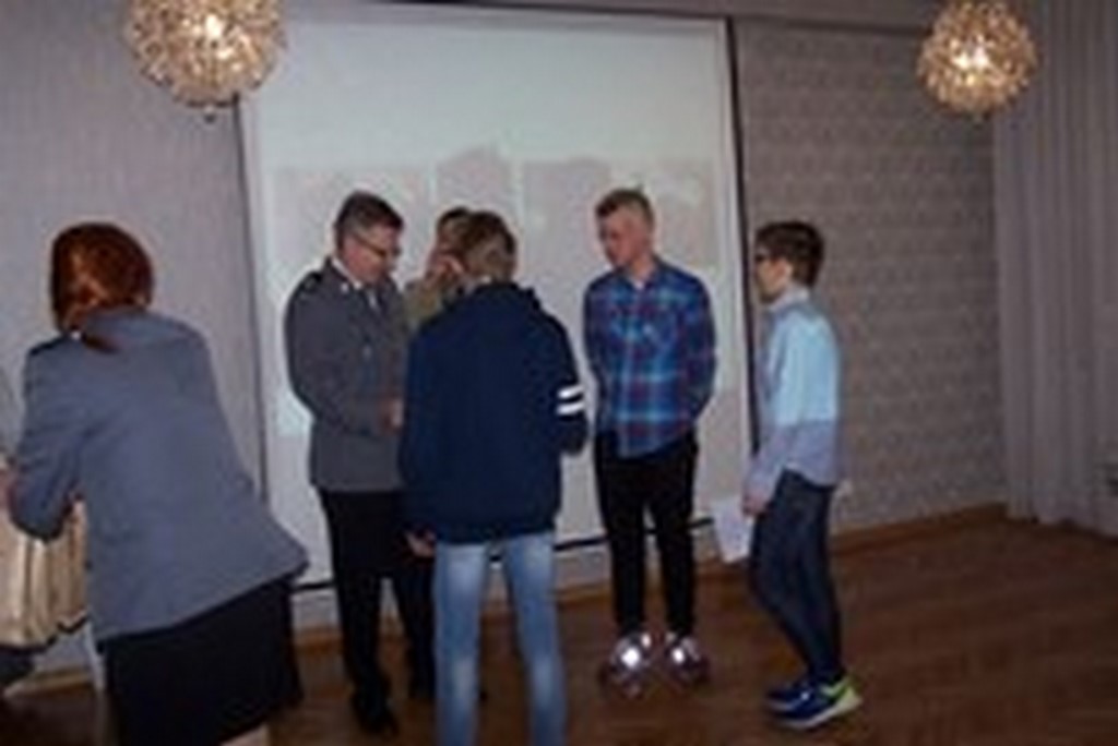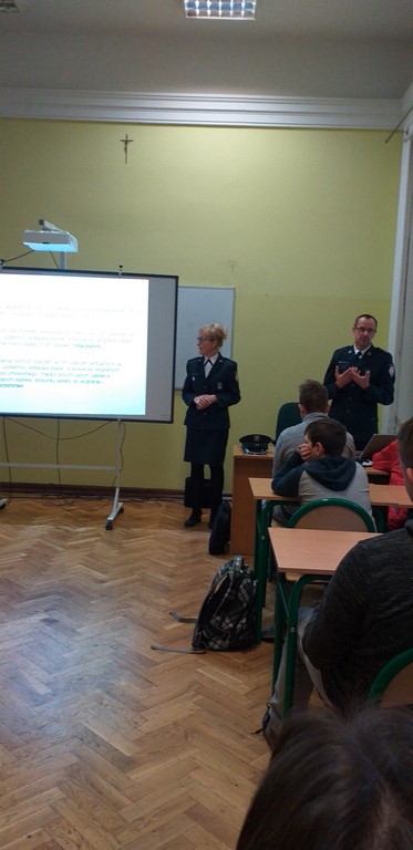 o konsekwencjach prawnych oraz zdrowotnych posiadania, rozprowadzania i zażywania alkoholu i środków odurzających. Punkt po punkcie, paragraf po paragrafie uczestnicy zostali zapoznani z istniejącym prawem i skutkami jego nieprzestrzegania. Oprócz wyżej wymienionych tematów pan sierżant na koniec spotkania poruszył kwestie związane z bezpieczeństwem w czasie wolnym od szkoły. Na zakończenie złożył najserdeczniejsze życzenia świąteczne nauczycielom, kadrze wychowawczej i młodzieży oraz zadeklarował, że przed feriami znów nas odwiedzi.