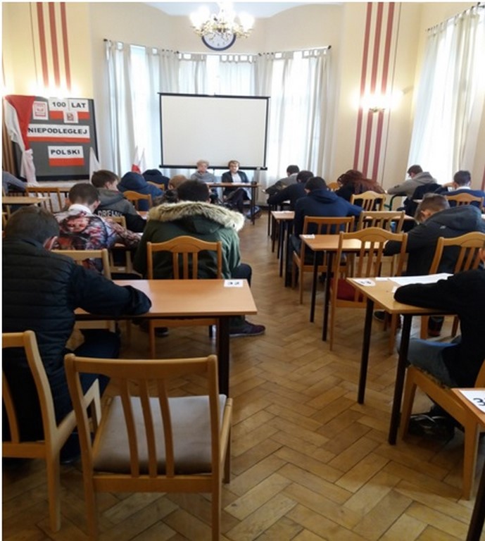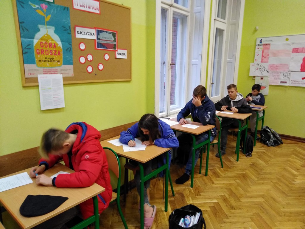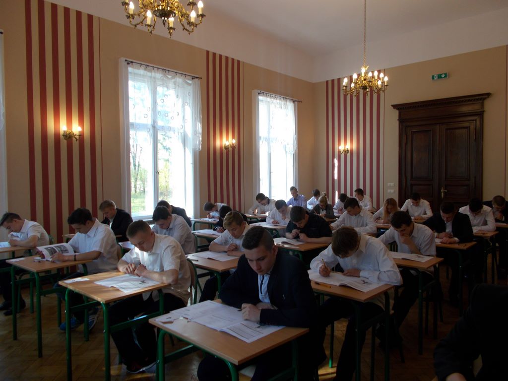 W czwartek 21 listopada uczniowie klasy ósmej w naszej szkole pisali próbny egzamin, jaki przyjdzie im przeżyć ponownie za pięć  miesięcy. Egzamin składał się trzech części: język polski (120 min),  matematyka (100 min) i z języka obcego (90 min).  Egzamin miał na celu przede wszystkim pokazanie uczniom formuły czekającego ich prawdziwego testu – rodzajów zadań, ich trudności oraz sposobów ich rozwiązywania.