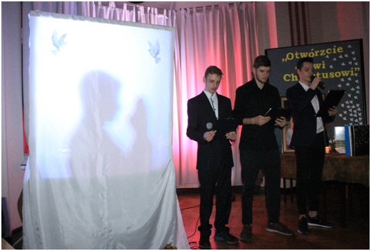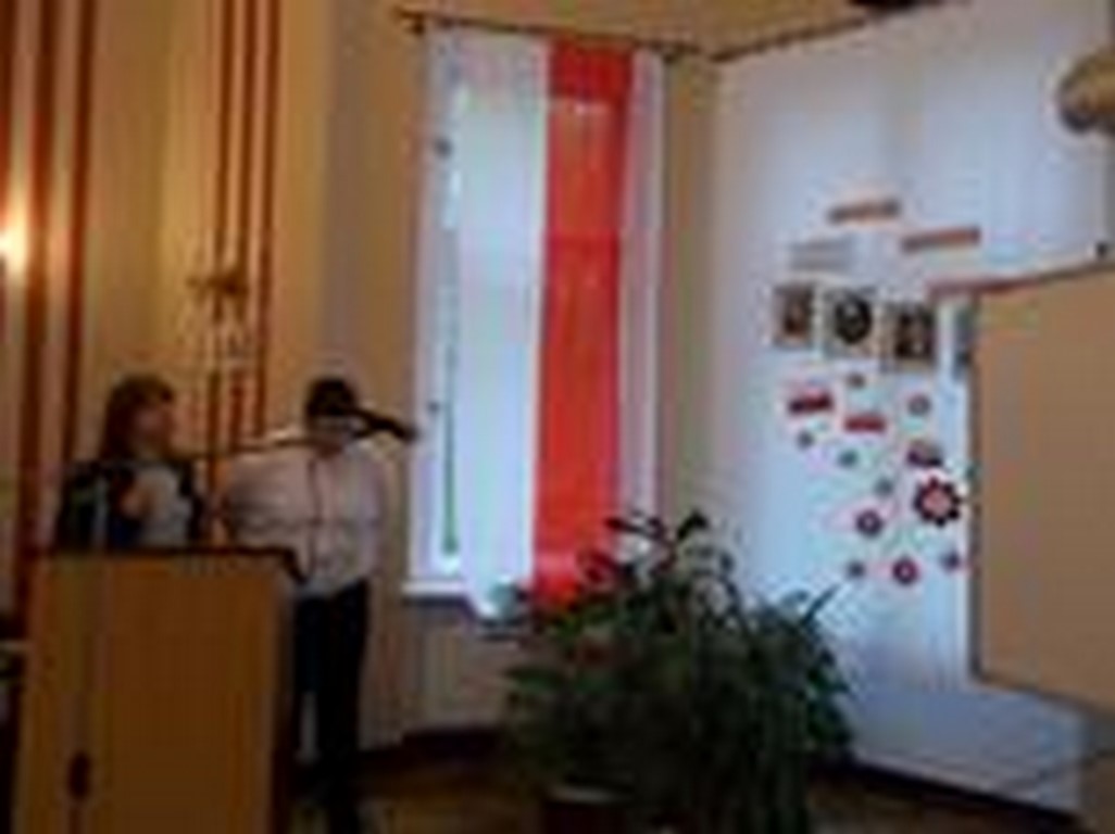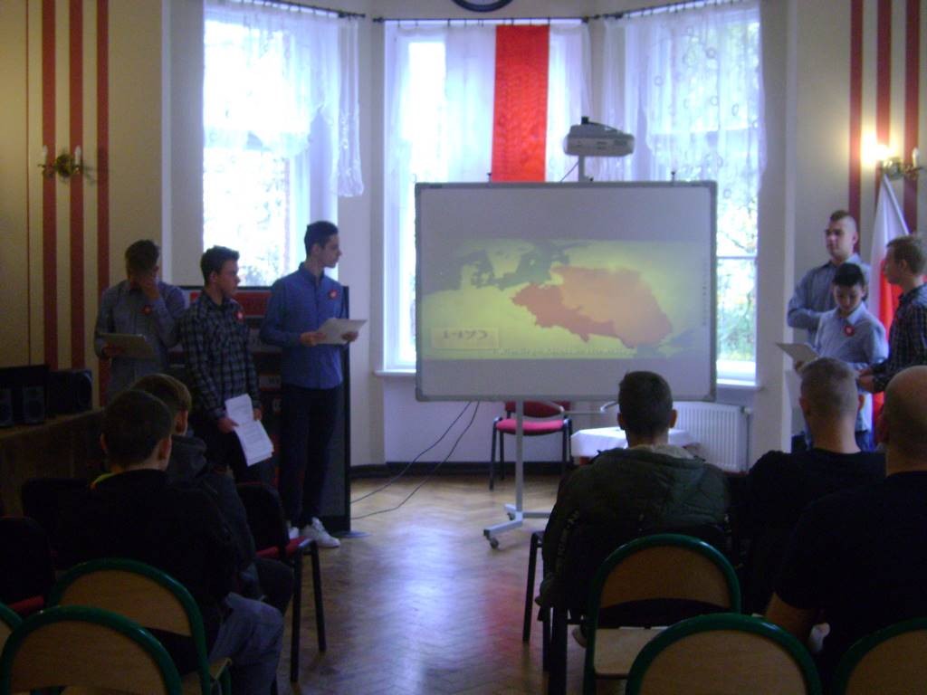 Pokaz multimedialny przygotowała Mariola Kozłowska nauczycielka j. polskiego. Uroczystość  prowadził Jacek Kortus uczeń 2 klasy gimnazjum.
