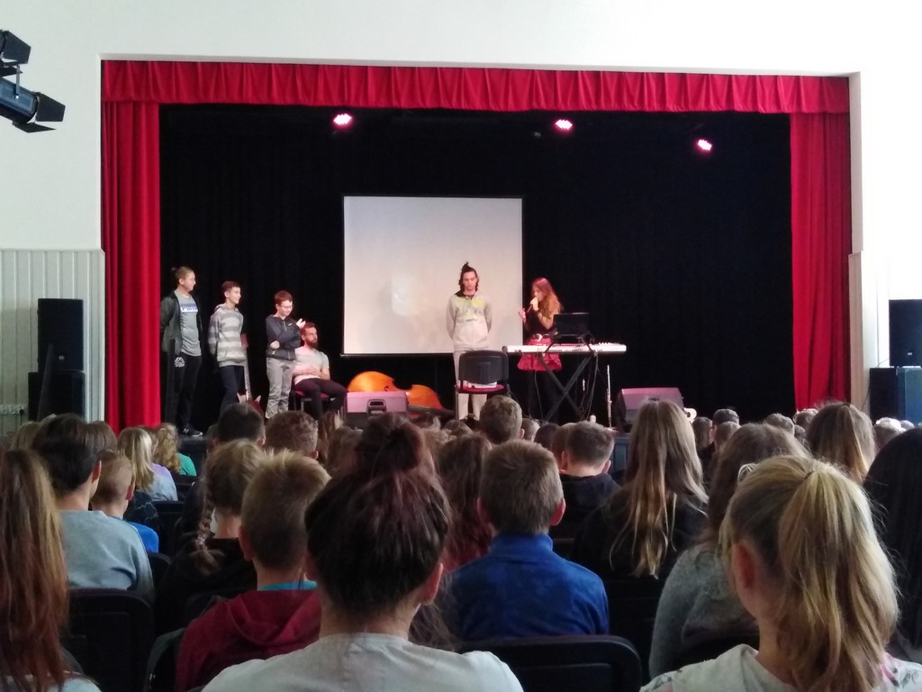W dniu 12 września uczniowie Niepublicznej Szkoły Podstawowej i Branżowej Szkoły I stopnia w Chraplewie wzięli udział w przedstawieniu profilaktycznym zorganizowanym przez Gminną Komisję do spraw rozwiązania problemów alkoholowych Gminy Kuślin. Przedstawienie w wykonaniu Aleksandry Dudziak dotyczyło wielu istotnych dla młodzieży kwestii. Omówiono zagadnienie hejtu i niemiłych słów oraz skutki, jakie powodują. Wskazano, że dobre myśli przekazywane innym ludziom mogą nieść radość i zadowolenie dla drugiego człowieka. Przedstawiono skutki nadmiernego korzystania z Internetu i gier komputerowych. A to wszystko okraszone pięknymi utworami z różnych gatunków muzycznych. Mamy nadzieję, że udział w tym przedstawieniu pomógł młodzieży zrozumieć jak ważne jest bycie dobrym dla drugiego człowieka i jak istotne jest świadome korzystnie z Internetu.