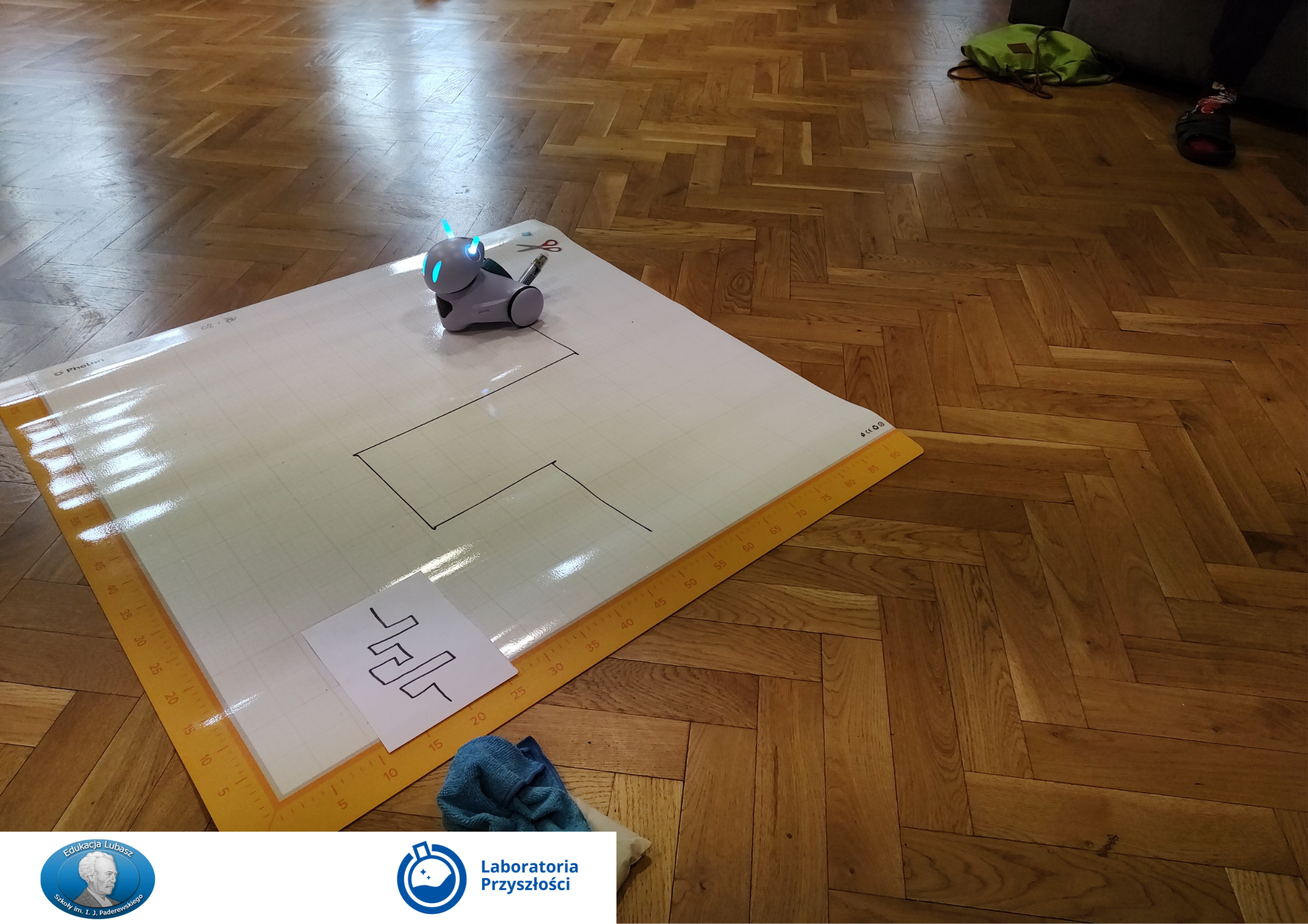 Klasa ósma rozpoczyna swoją przygodę z programowaniem w języku Python. Żeby przypomnieć uczniom schemat programowania i myślenia robota, Kratek i Balbina zamienili się w rysowników. Zadaniem młodzieży było odtworzenie rysunku za pomocą robota