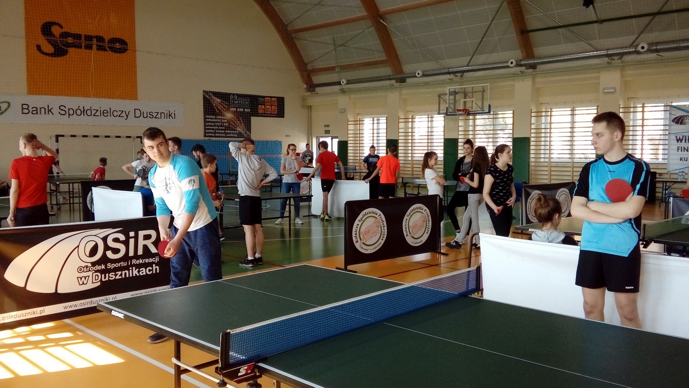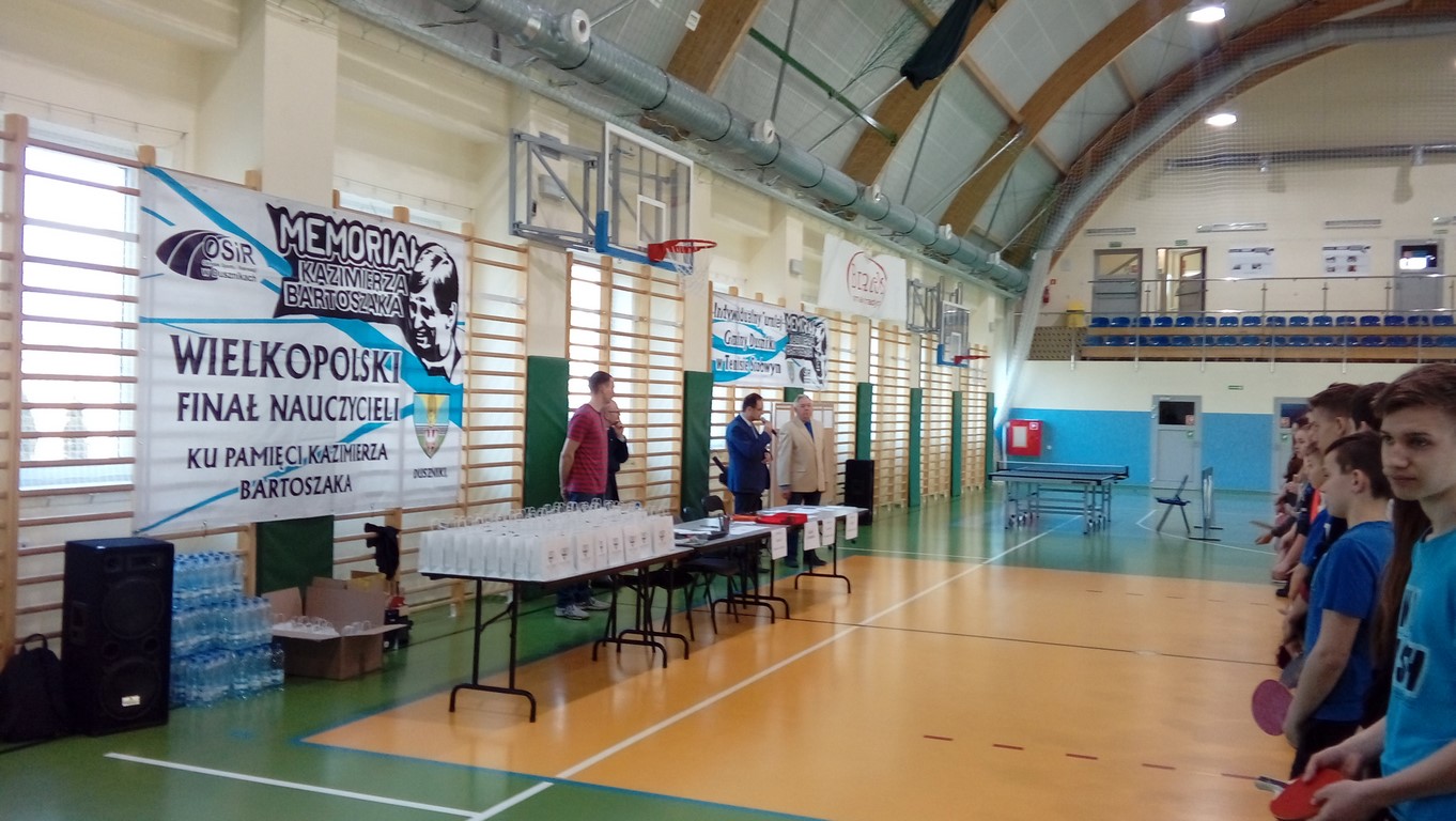 W piątek 31 marca w dusznickim Ośrodku Sportu i Rekreacji odbył się XIV Memoriał Kazimierza Bartoszaka w tenisie stołowym. Wśród drużyn biorących udział w zawodach nie zabrakło reprezentacji Niepublicznego Gimnazjum w Chraplewie. Uczniowie startowali w trzech kategoriach wiekowych, tak więc klasy II reprezentowali: Jakub Kliński, Krzysztof Wicher i Sebastian Pyschny, natomiast klasy III Michał Kubiaczyk, Sebastian Frankowski, Jakub Chwalisz oraz Patryk Nowicki. Gra w każdej z kategorii była wyrównana i stała na wysokim poziomie. Po rozegraniu wszystkich spotkań najlepiej spośród trzecioklasistów wypadł Sebastian Frankowski, który odpadł w półfinale. Natomiast w reprezentacji klas II pierwsze miejsce zajął Sebastian Pyschny, który wygrał wszystkie swoje mecze!!! Jest to największy sukces naszego ucznia, biorąc pod uwagę starty we wcześniejszych edycjach Memoriału. Wszystkim raz jeszcze gratulujemy i życzymy samych sukcesów.
