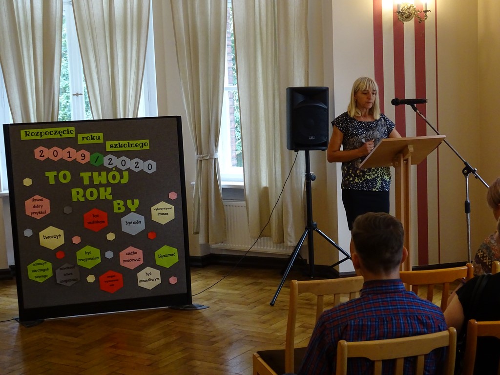 Ten rok to rok wielu zmian zarówno w systemie edukacji jak i w szkole w Chraplewie. Niepubliczne Gimnazjum w Chraplewie przekształciło się w Niepubliczną Szkołę Podstawową z oddziałami gimnazjalnymi, a na jej czele stanęła nowa Dyrektor- p. Mariola Kozłowska. Pani Dyrektor przywitała wypoczętą i uśmiechniętą młodzież oraz ich rodziców. Podkreśliła, że priorytetem tegorocznych działań jest współpraca z Ośrodkiem oraz pomoc młodym ludziom zwłaszcza w obliczu zmian w edukacji. Następnie przedstawiła grono pedagogiczne oraz podział klas na bieżący rok.