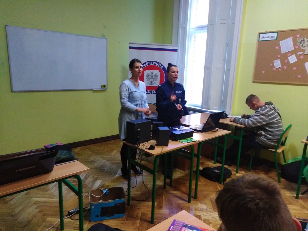 W dniu 15.10 obyło się spotkanie uczniów Szkoły z Panią Karoliną Ratajczak z Komendy Powiatowej Policji w Nowym Tomyślu i Panią Karoliną Józefiak z Powiatowej Stacji Sanitarno - Epidemiologicznej w Nowym Tomyślu. Tematem przewodnim spotkania była profilaktyka zażywania dopalaczy. Panie tłumaczyły uczniom, jak niebezpieczne jest zażywanie substancji psychoaktywnych niewiadomego pochodzenia. Pogadanka wzbogacona była o ćwiczenia i filmy edukacyjne. Na zakończenie zajęć Policjantka przypomniała o szacunku nie tylko wobec pracowników Szkoły i Ośrodka, ale również wobec siebie nawzajem. To było pierwsze tego typu spotkanie w tym roku szkolnym. Mamy nadzieję, że współpraca z Policją i PSSE w Nowym Tomyślu będzie się rozwijać i uda się pomóc młodym ludziom bezpiecznie wejść w dorosłe życie.