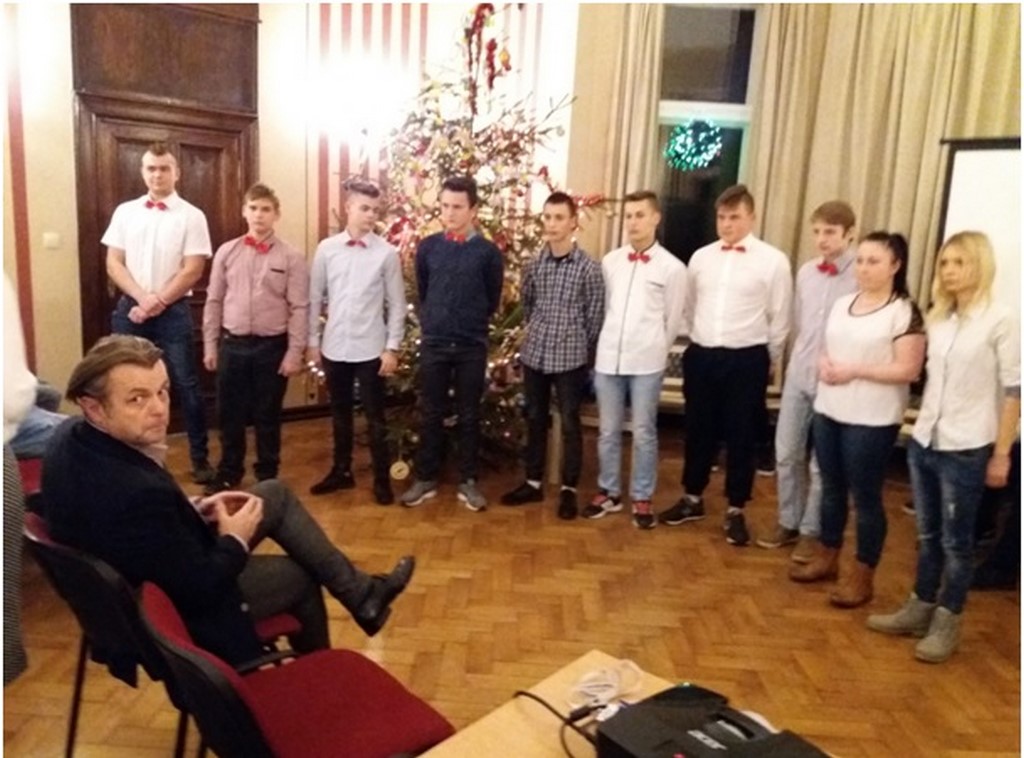 W dniu 7 grudnia odbyło się spotkanie dyrektor Niepublicznej Szkoły Podstawowej – Marioli Kozłowskiej, kierownika internatu Ośrodka Szkolenia i Wychowania – Roberta Szeszuły oraz przedstawicieli Rady Młodzieży – Sebastiana Pyschnego, Samorządu uczniowskiego – Krzysztofa Wichra